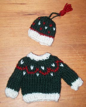 package ornaments in sport yarn with fair isle star.